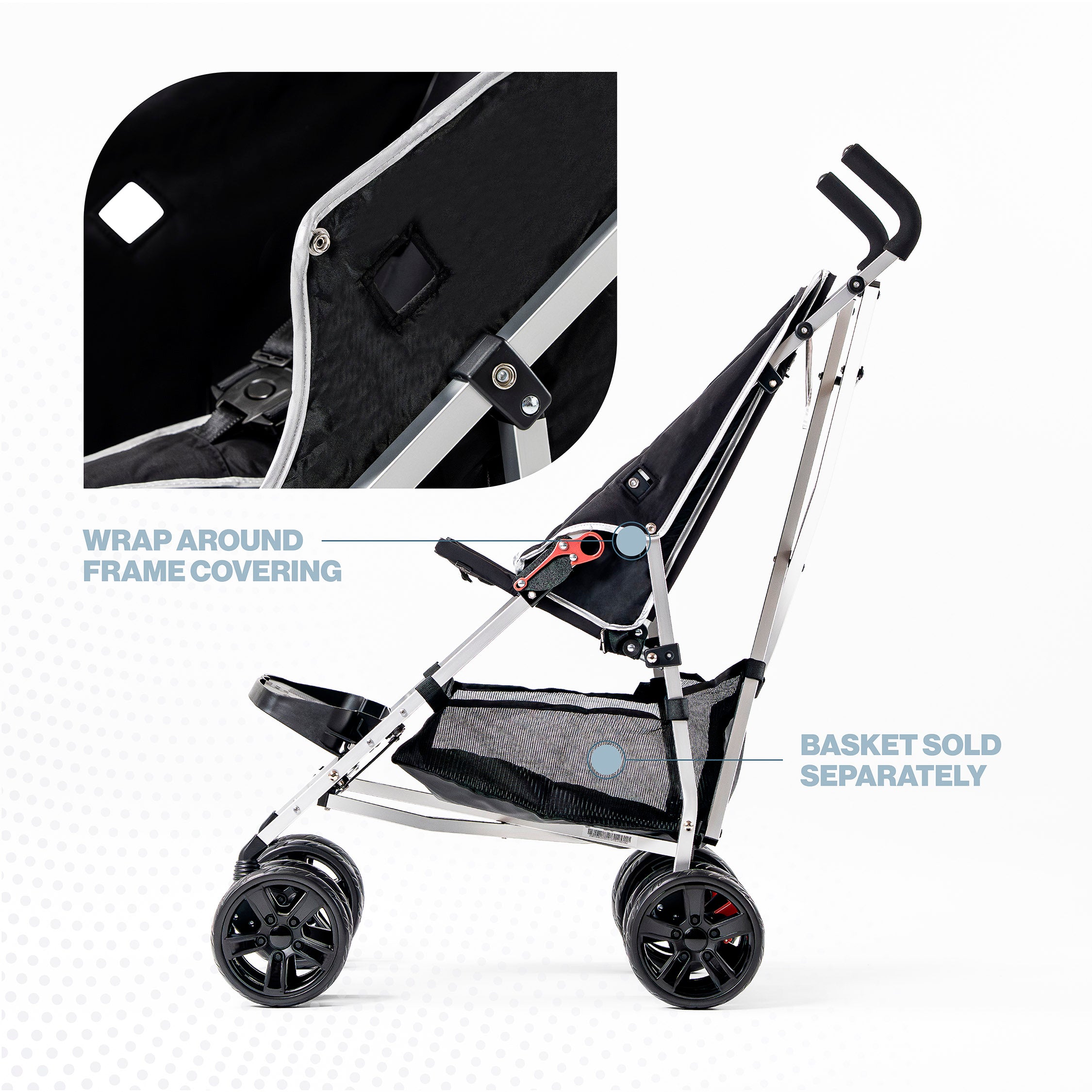- Sturdy Construction: This large pushchair is ideal for older kids with a robust but lightweight aluminum frame. The Coche XL offers ample seating space with 15 inch wide /10 inch depth seats. This stroller can support up to 110 pounds and accommodates individuals up to 48 inches tall
